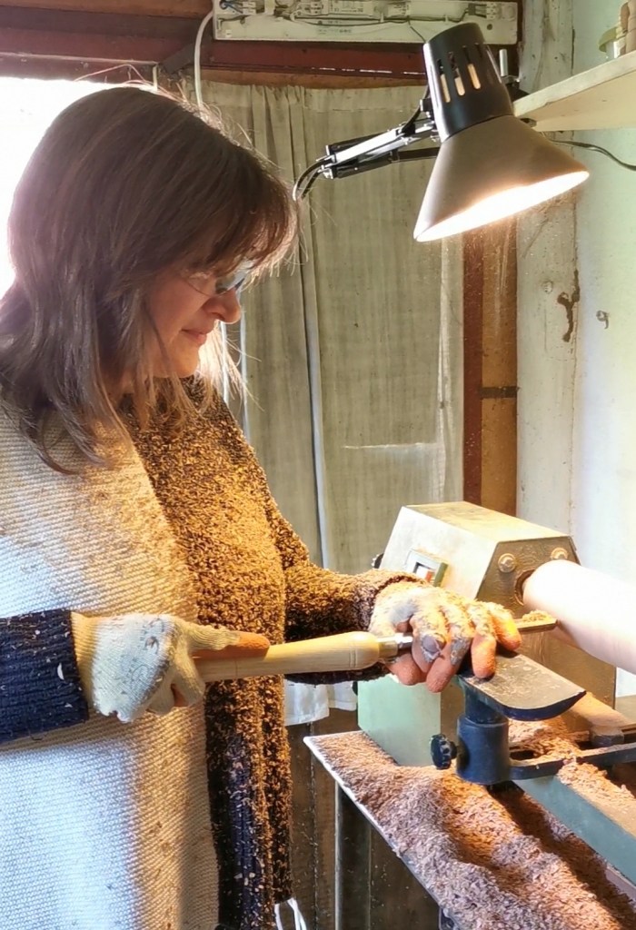 A questo punto ci siamo munite di sgorbie, legno, vestiti vecchi da riempire di trucioli e tanto entusiasmo ed abbiamo iniziato a tornire, o meglio, ad imparare a farlo.